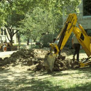 When oak trees are planted sufficiently close to one another, the roots between them will fuse to allow the exchange of water and inorganic nutrients. In addition to this kind of root grafting that occurs in both red oaks and live oaks, a different kind of root connection also occurs in live oaks growing in woodlands. Live oaks often begin as sprouts growing from the root systems of mature trees, so that they share the same root systems. Both of these different connections provide efficient “pipelines” for the pathogen to spread from diseased trees to adjacent healthy trees. These connections may be broken by mechanically breaking the roots with trenching machines such as backhoes, chain trenchers, or wheel trenchers.